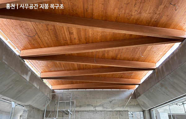 홍천 사무용공간 지붕 구조용집성재 목구조 (구조용집성재)